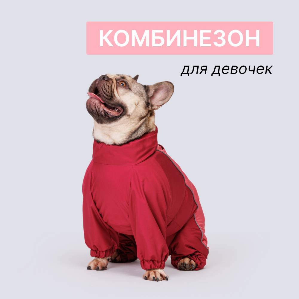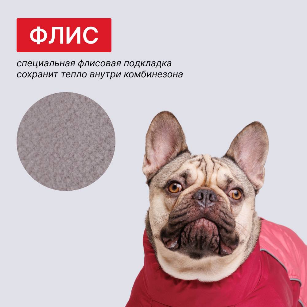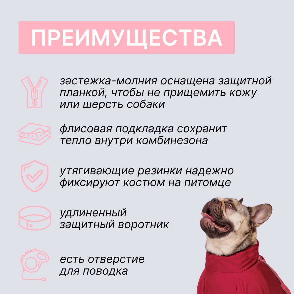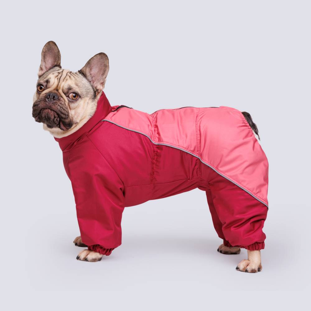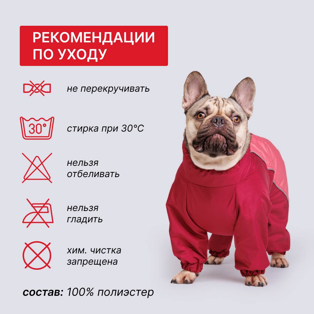- Застежка-молния на спине, комбинезон полностью закрывает тело животного, защищая его от намокания и замерзания.