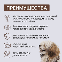 - Утягивающие резинки надежно фиксируют костюм на питомце.