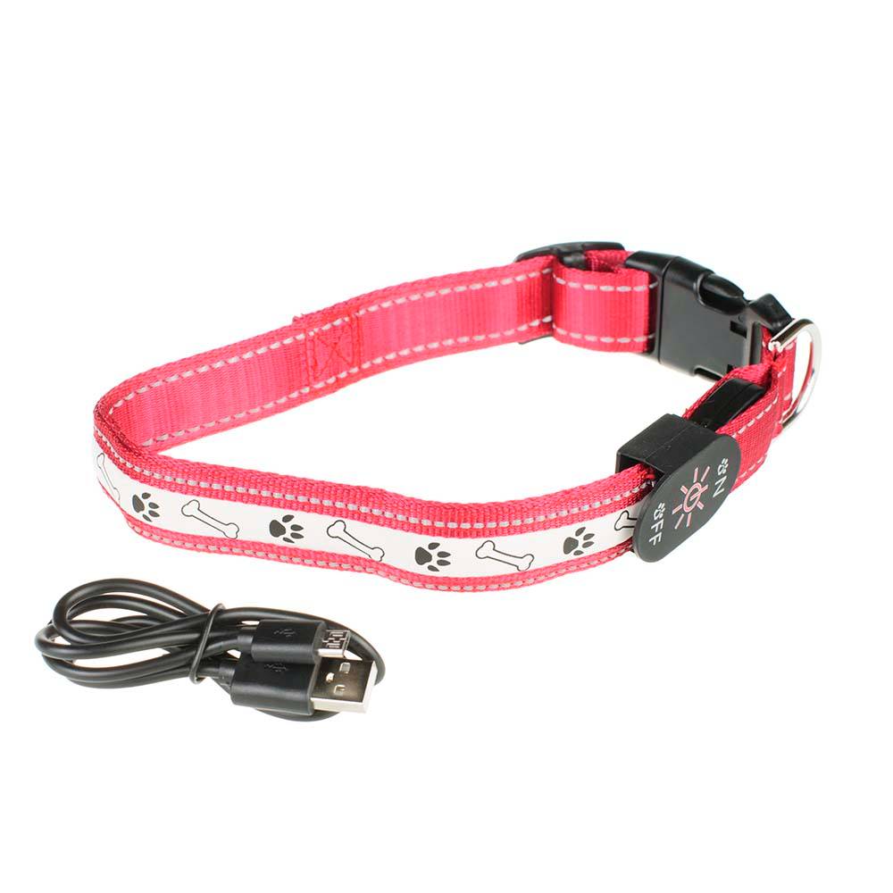 Rungo Ошейник светящийся с USB зарядкой для собак мелких пород, 30-40 см, S, с рисунком розовый