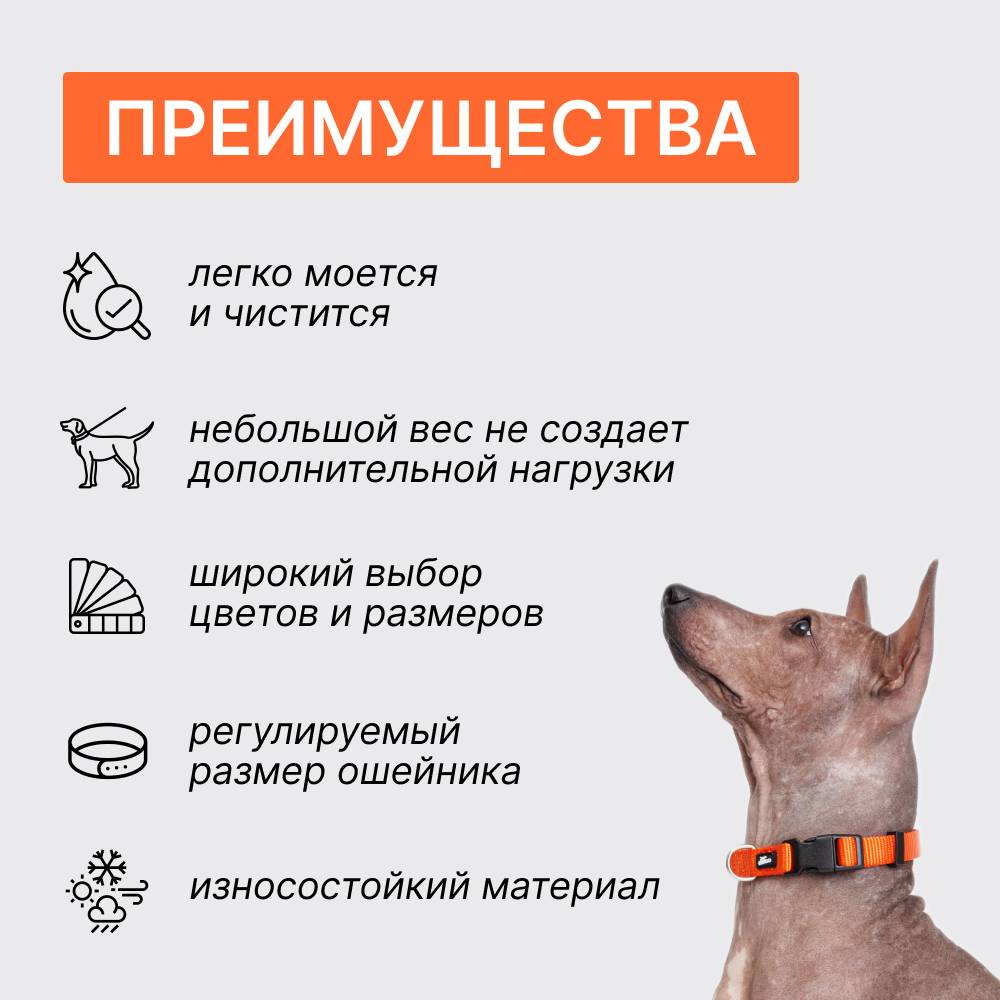 Нейлоновый ошейник для собак от бренда Rungo – стильный, легкий и износостойкий аксессуар для комфортных прогулок.