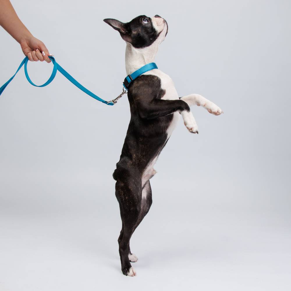 • Надежно крепится металлическим карабином к ошейнику или шлейке.