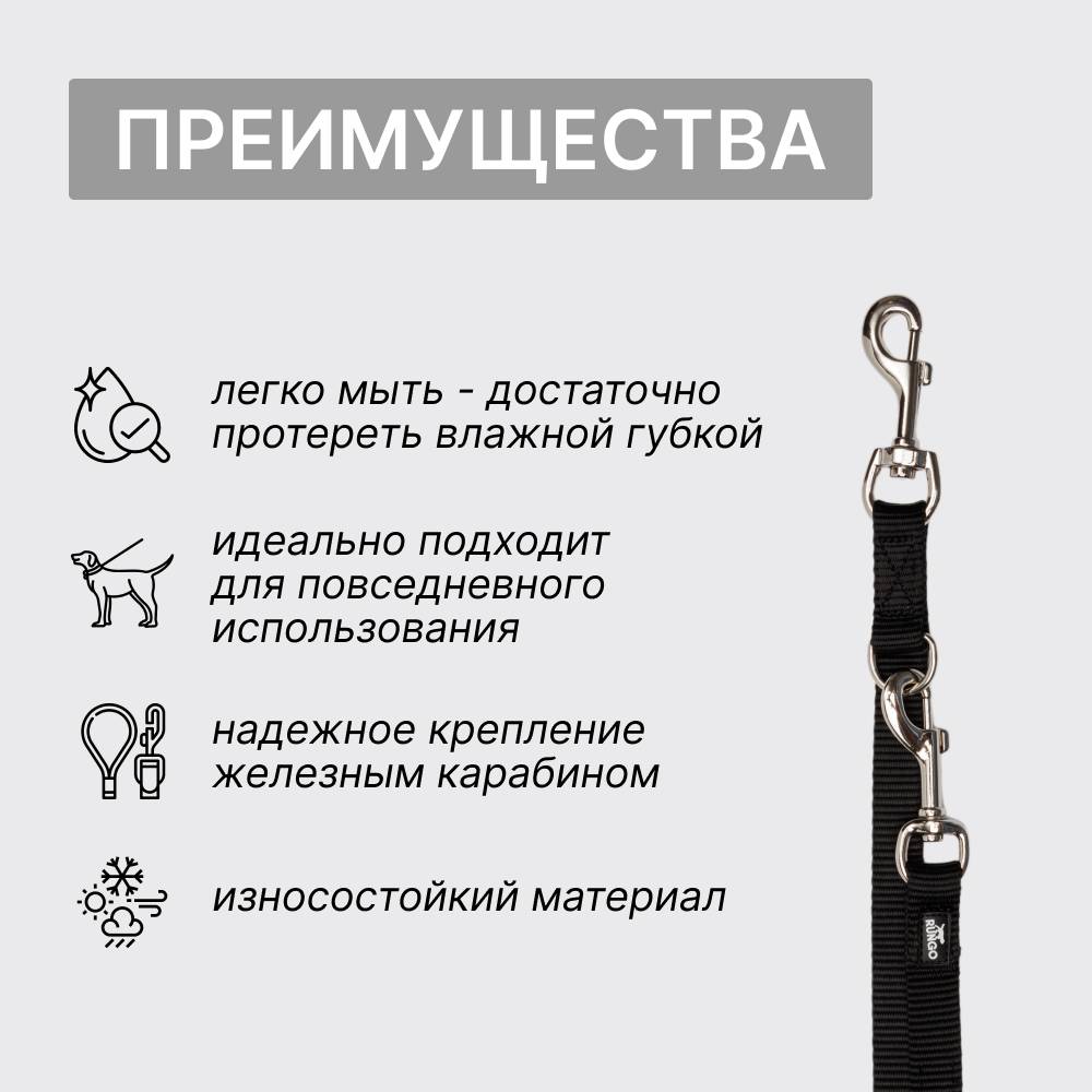 Поводок-трансформер для собак от бренда Rungo – это практичный и удобный аксессуар для комфортных прогулок с питомцем.