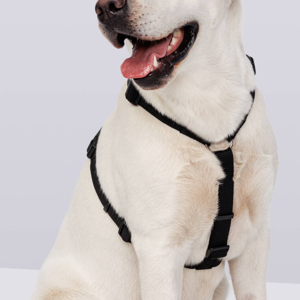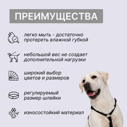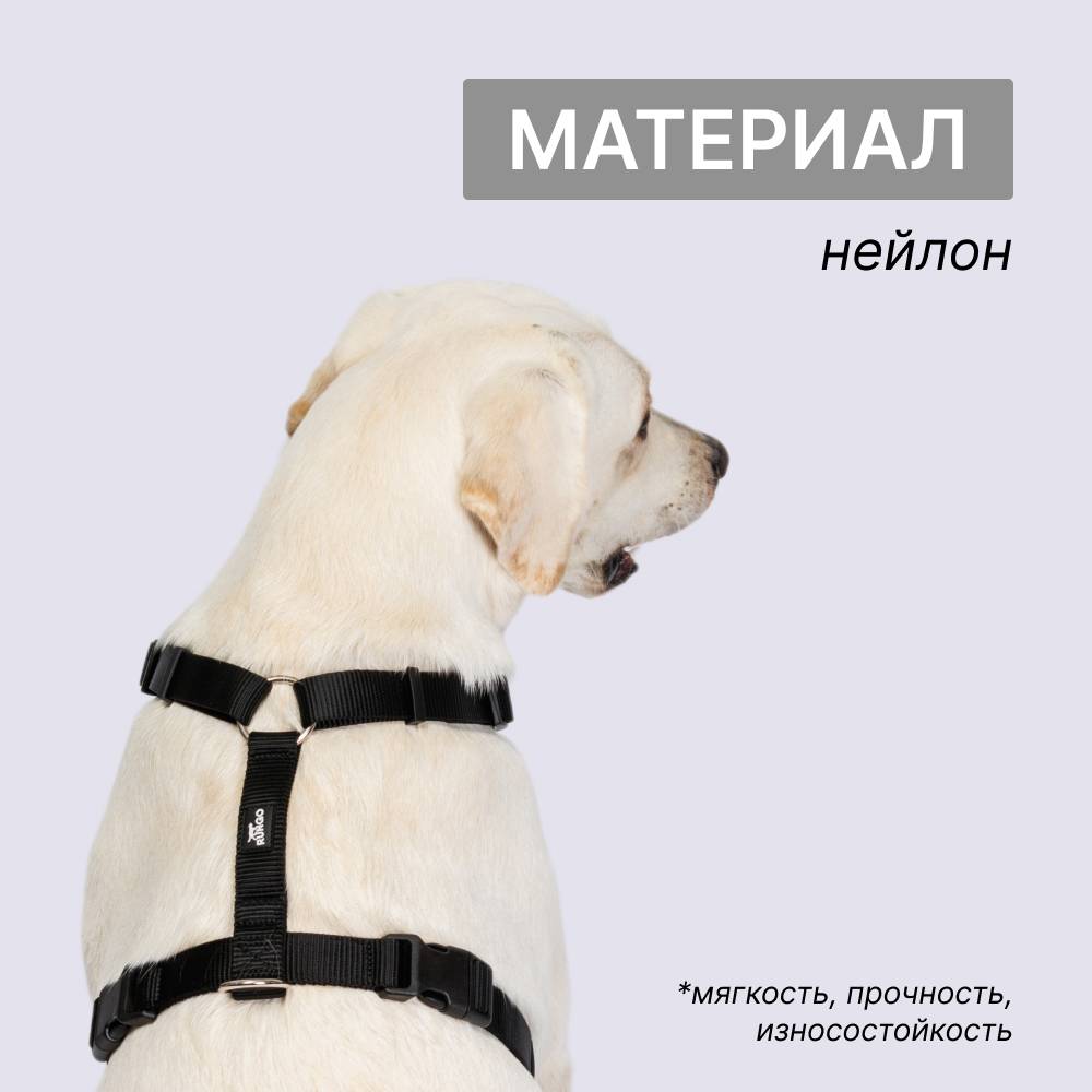 - При натяжении поводка шлейка не съезжает на шею собаки благодаря креплению в зоне спины.