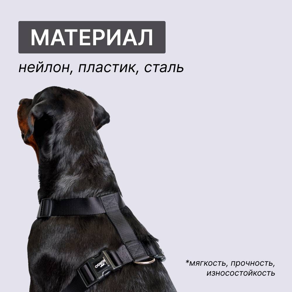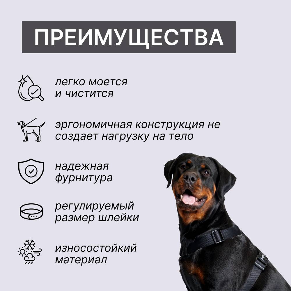 - При натяжении поводка шлейка не съезжает на шею собаки благодаря креплению в зоне спины.