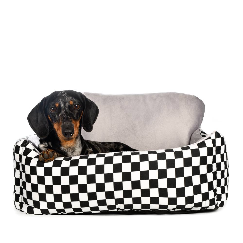 - Классическая прямоугольная форма лежака, высокие мягкие бортики и спинка - идеальная лежанка для теплолюбивых питомцев.