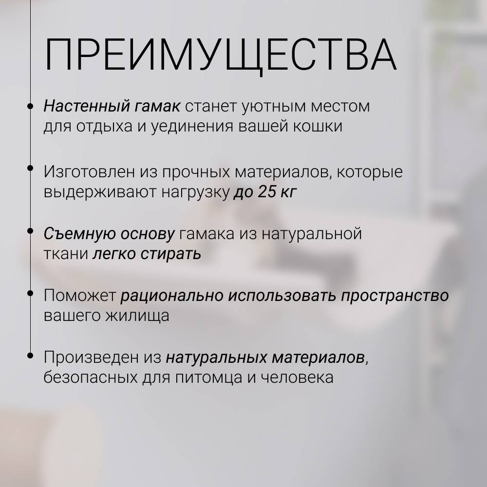 Гамак на стену входит в игровой настенный комплекс Активити от бренда Rurri. Игровой комплекс разработан с заботой о физическом и психологическом здоровье вашей кошки и станет любимым местом игр и отдыха вашего усатого любимца.