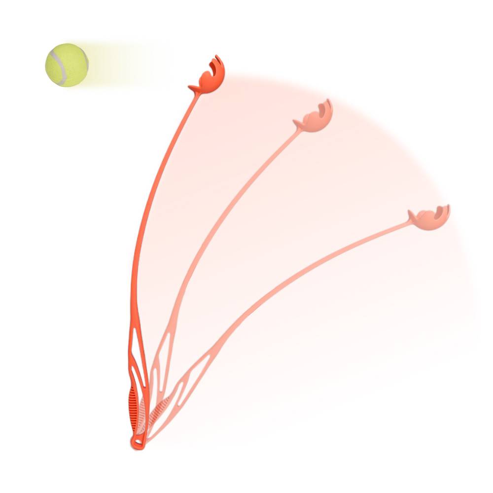- С помощью длинной ручки мяч можно далеко и точно запустить.