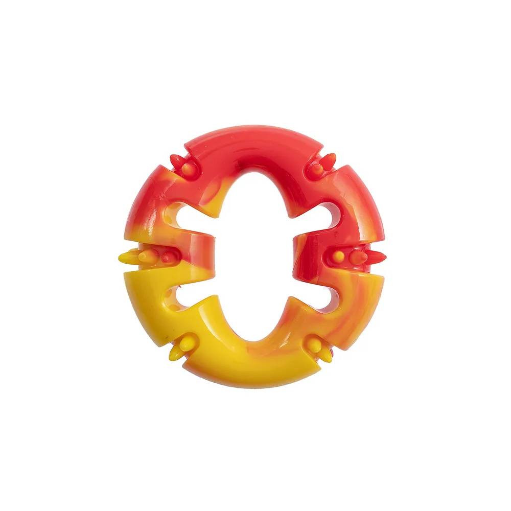 Самая яркая и прыгучая. Берем на улицу и играем дома. Постоянно грызет, но за 5 месяцев колечко осталось цело. Среди кипы игрушек, всегда выбирает эту. Колечко легко моется и еще оно достаточно легкое,...Комментарий