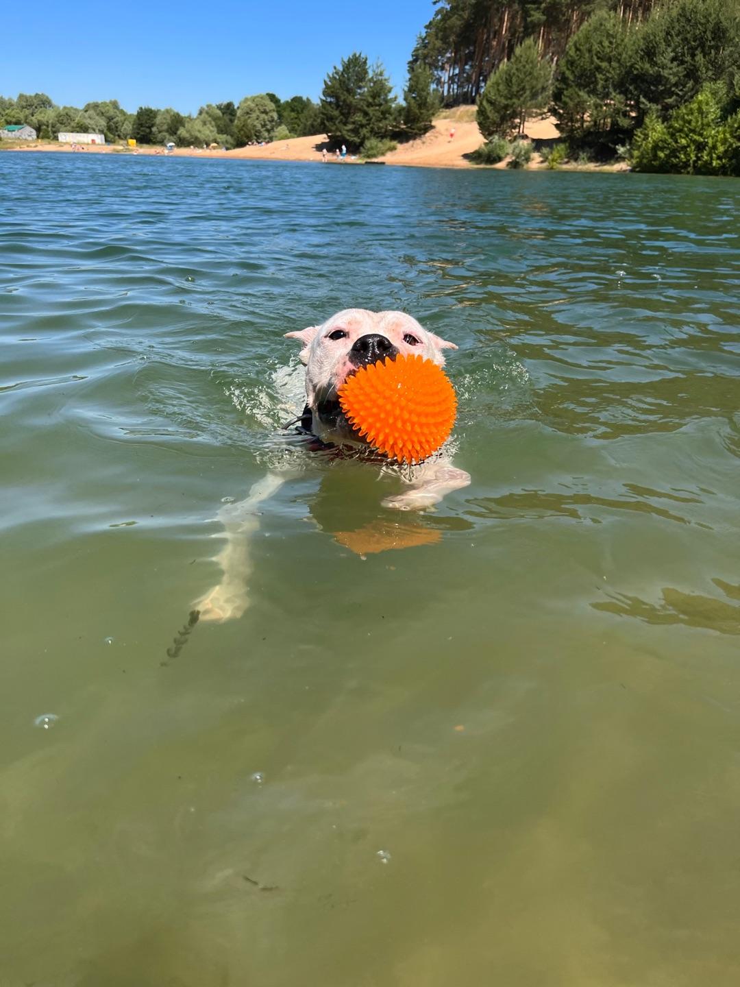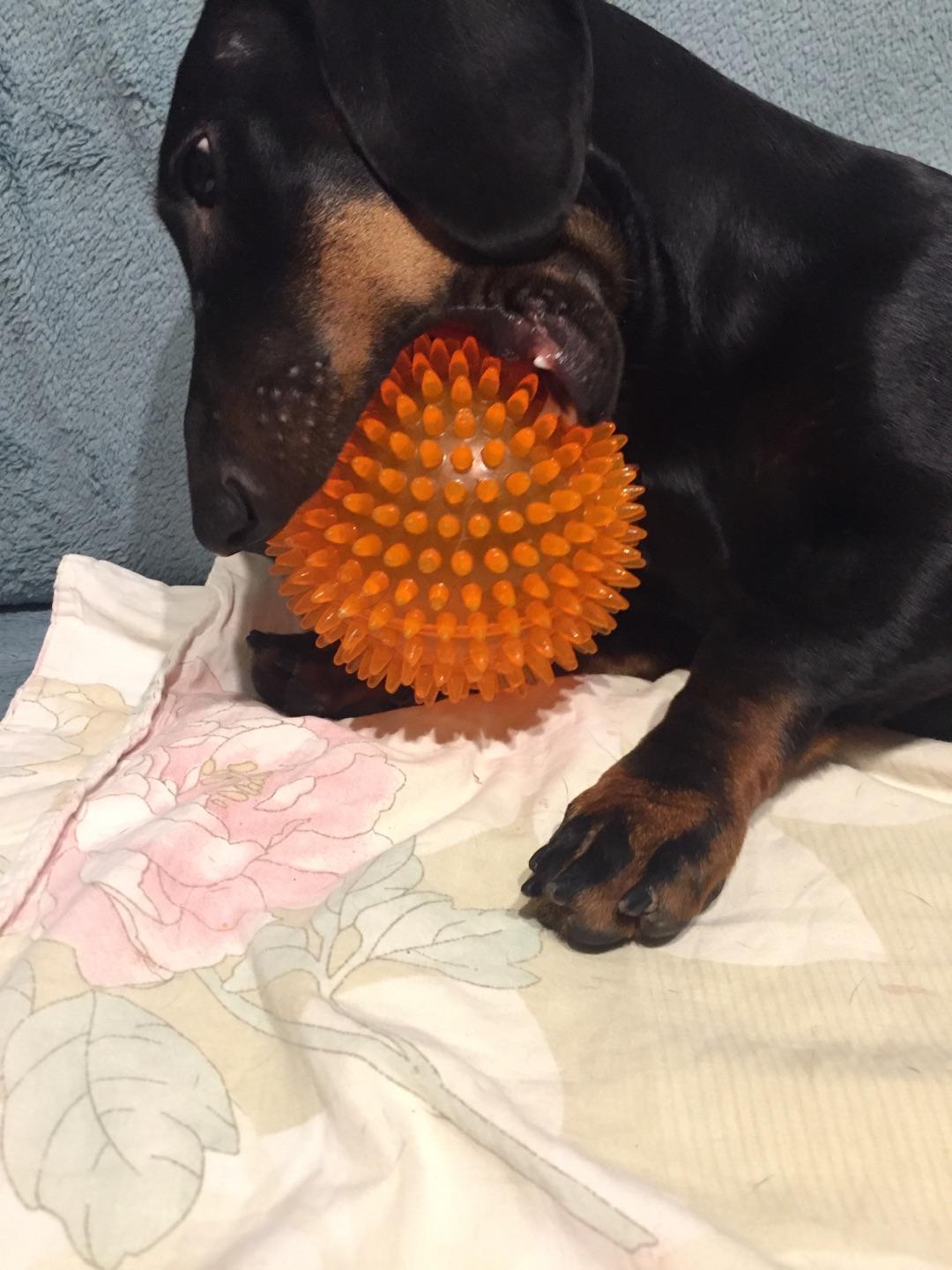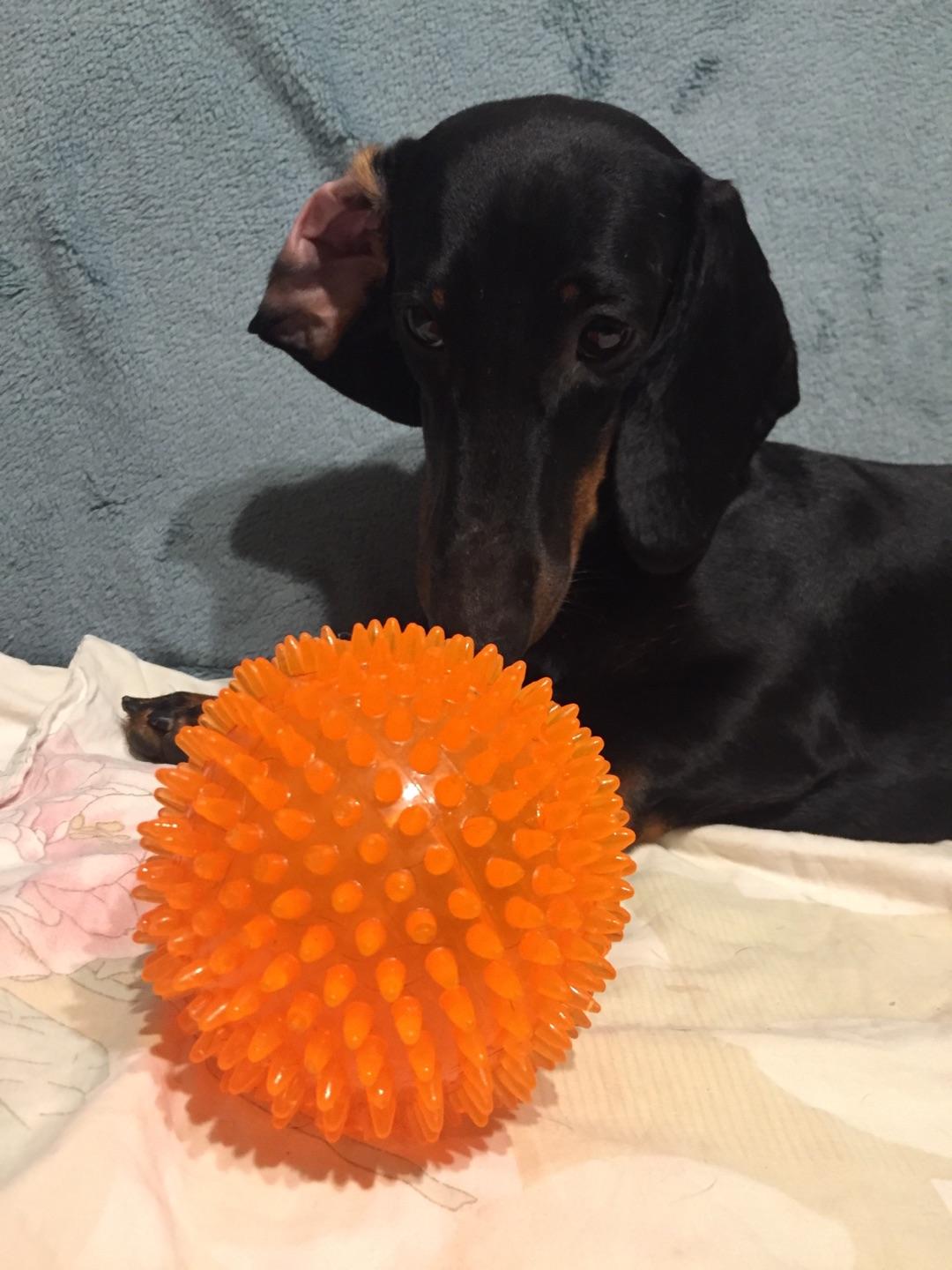 Играет только с этим мячом, грызет даже, а он почти не страдает от этого. Удивительно!Комментарий