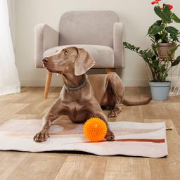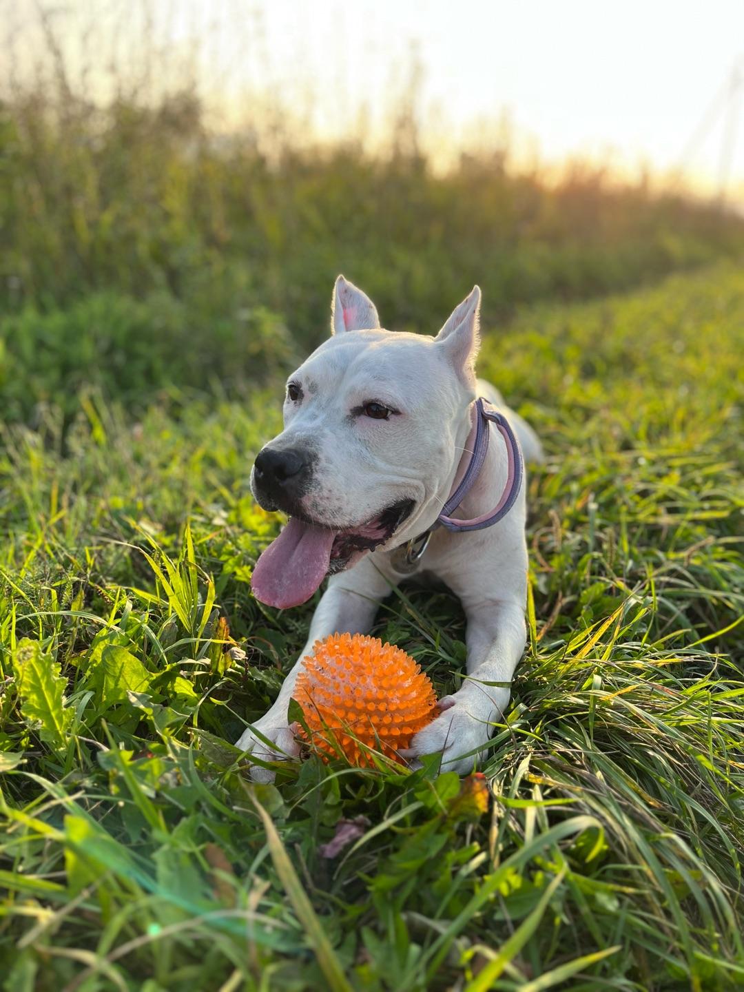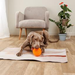 Собаки сходят с ума, когда даём поиграть. Пищалка адская, материал хороший, но если собака засядет с ним надолго, то конечно разгрызёт. У нас таксы, им этот мяч велик, но их это наоборот раззадоривает. На улице очень классно прыгает.Комментарий
