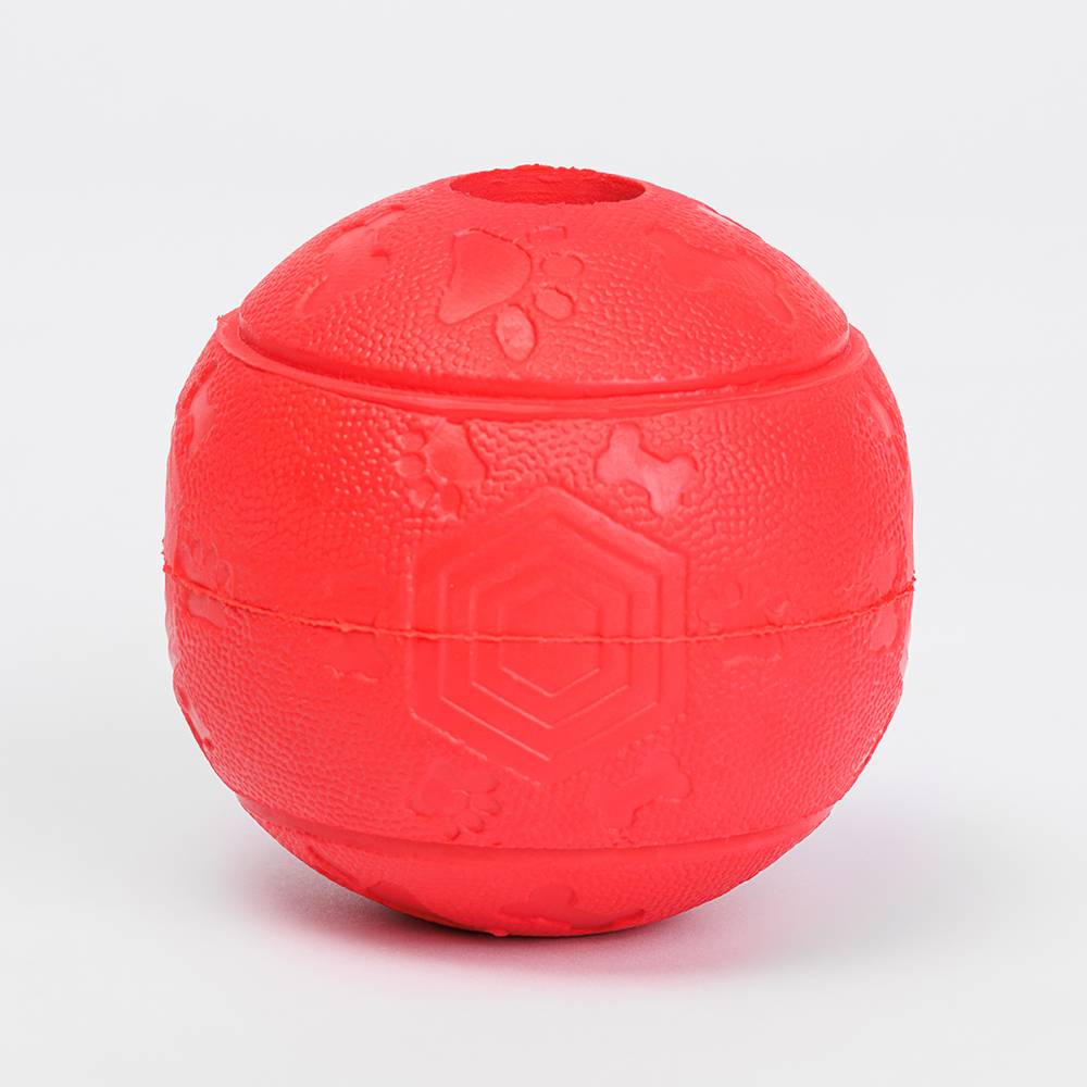 - Оригинальная игрушка в виде мяча с отверстиями, в которые можно поместить лакомства, что еще сильнее заинтересует вашего питомца.