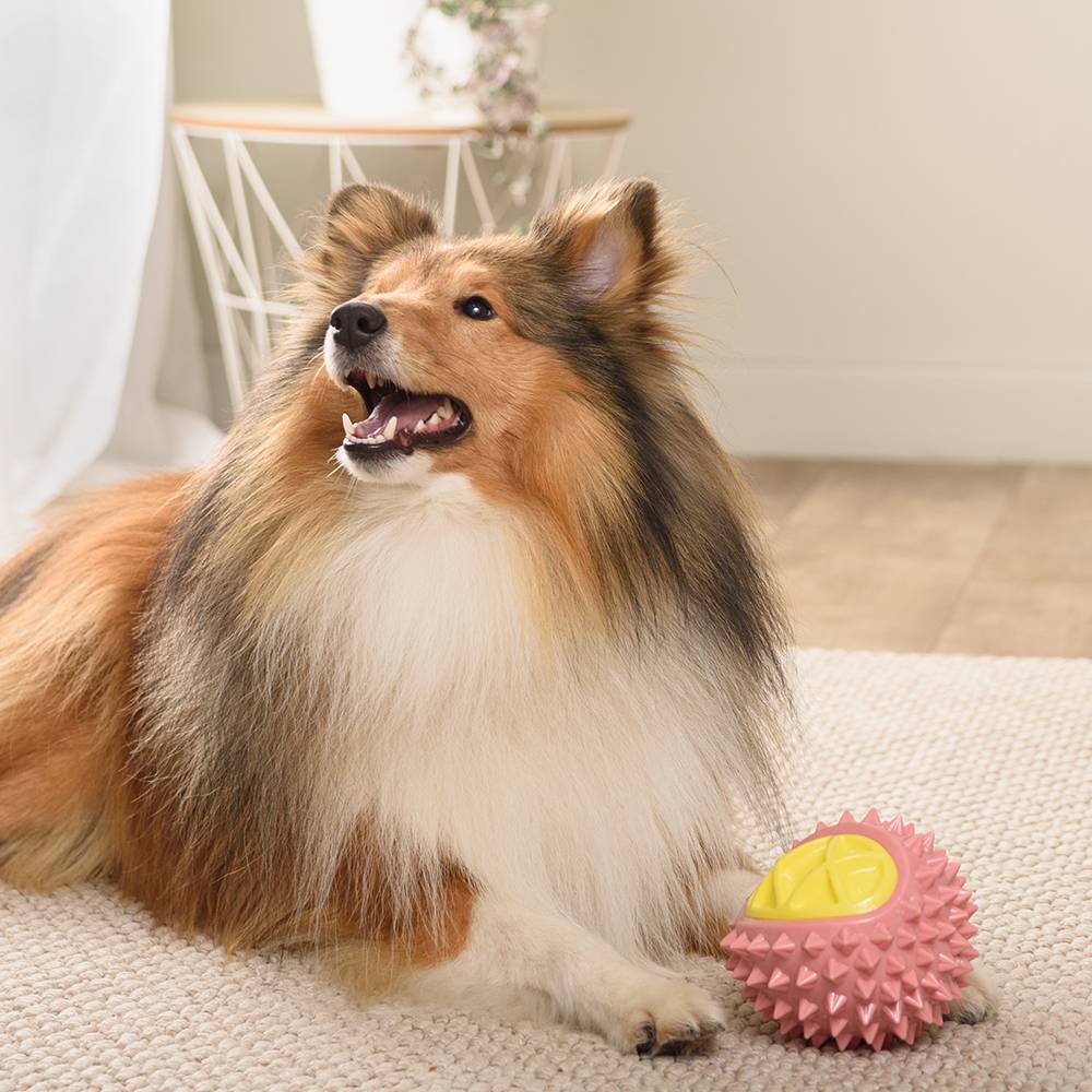 Игрушка для собак Мяч-фрукт от бренда Rurri поможет питомцу удовлетворять свои инстинкты и весело проводить время.