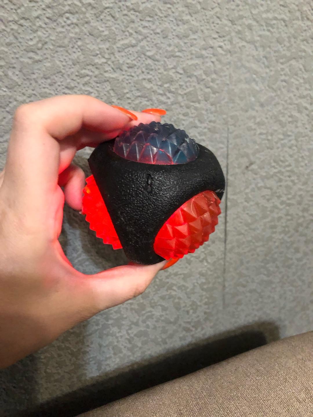 Комментарий: Наш француз очень любит мячики, а еще любит грызть игрушки. Точнее их уничтожать. Этот мяч очень прочный. Ничего у него отгрызть не получается уже месяцев 6. Ура ☺️А ещё мяч светится после того как его стукнуть или кинуть.