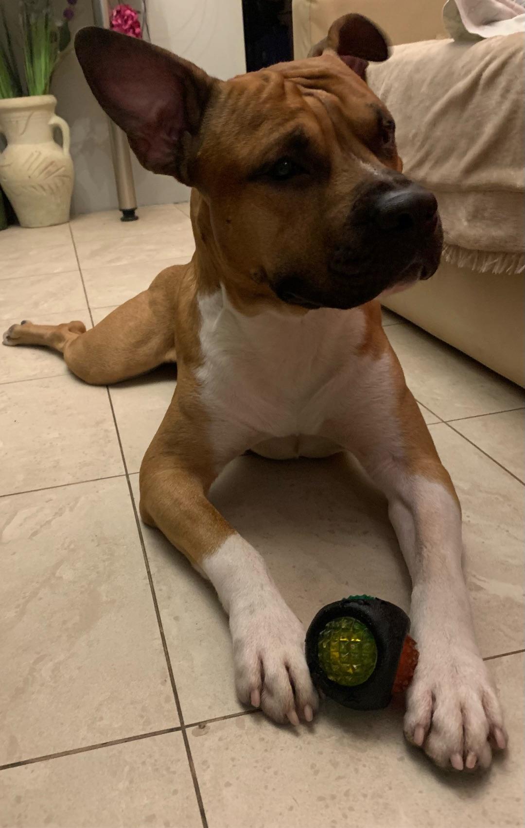 Комментарий: Пёс наш активный оценил мяч и долго играл с ним, остался цел.