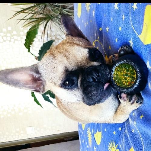 Комментарий: Наш француз очень любит мячики, а еще любит грызть игрушки. Точнее их уничтожать. Этот мяч очень прочный. Ничего у него отгрызть не получается уже месяцев 6. Ура ☺️