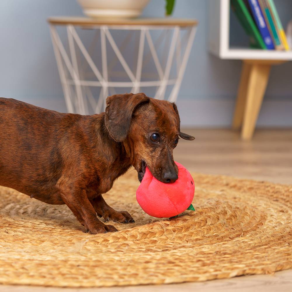 Игрушка для собак Помидор от бренда Rurri займет вашего питомца и отвлечет его от нежелательных игр с предметами интерьера.