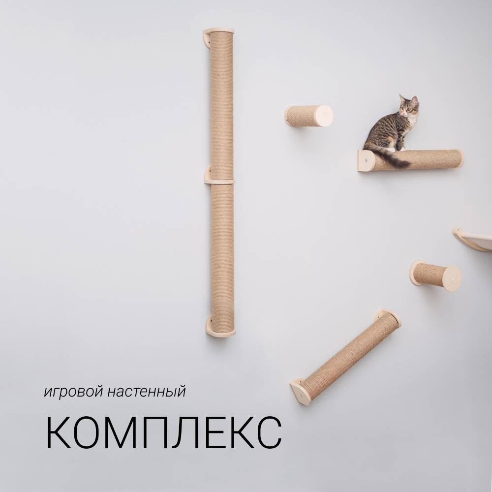 Когтеточка-столбик на стену входит в игровой настенный комплекс Активити от бренда Rurri. Игровой комплекс разработан с заботой о физическом и психологическом здоровье вашей кошки и станет любимым местом игр и отдыха вашего усатого любимца.