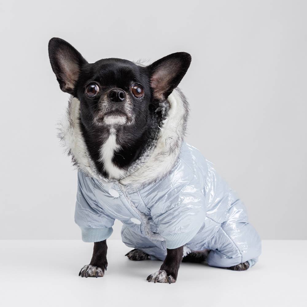 Комбинезон для собаки-девочки с меховым капюшоном поможет вашей любимице не только согреться, но и быть самой модной на прогулке.