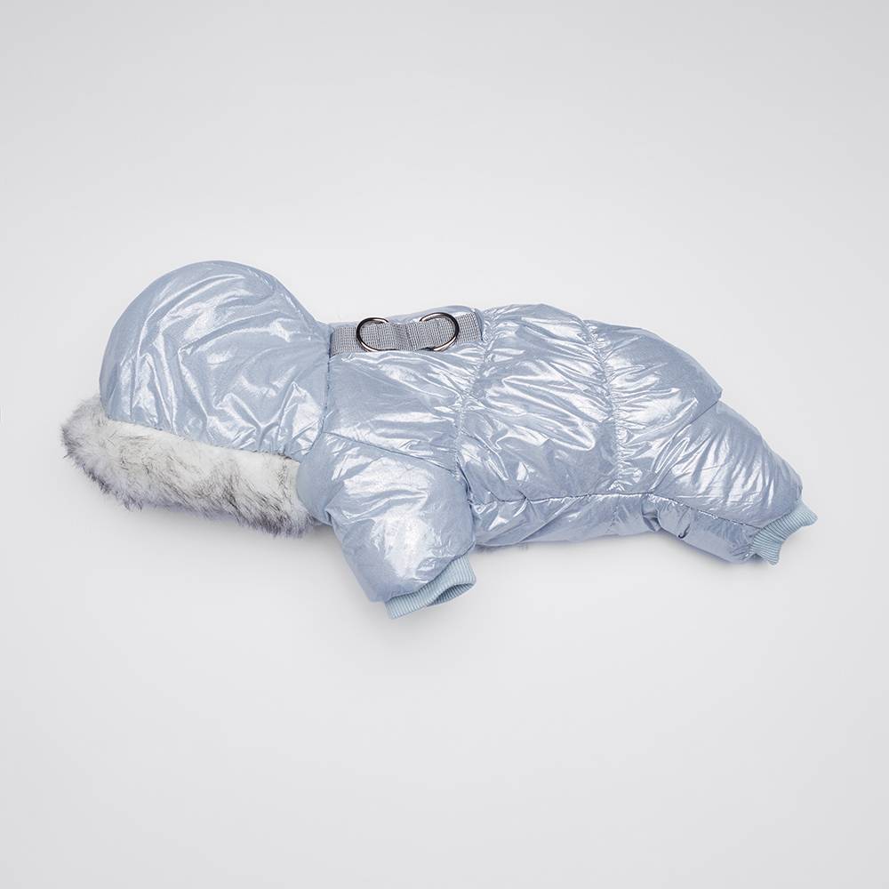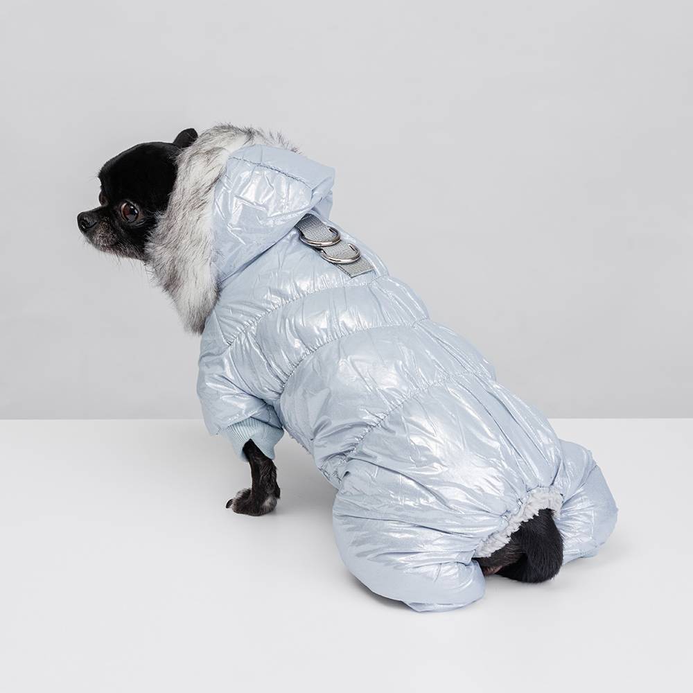 Комбинезон для собаки-девочки с меховым капюшоном поможет вашей любимице не только согреться, но и быть самой модной на прогулке.