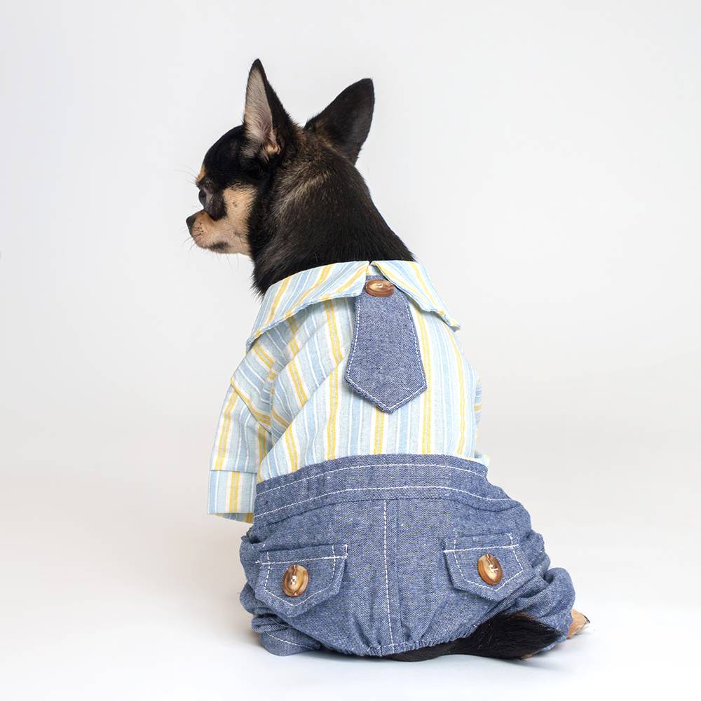 Джинсовый костюм от бренда RURRI поможет выделиться вашему питомцу на прогулке или пет-френдли мероприятии.
