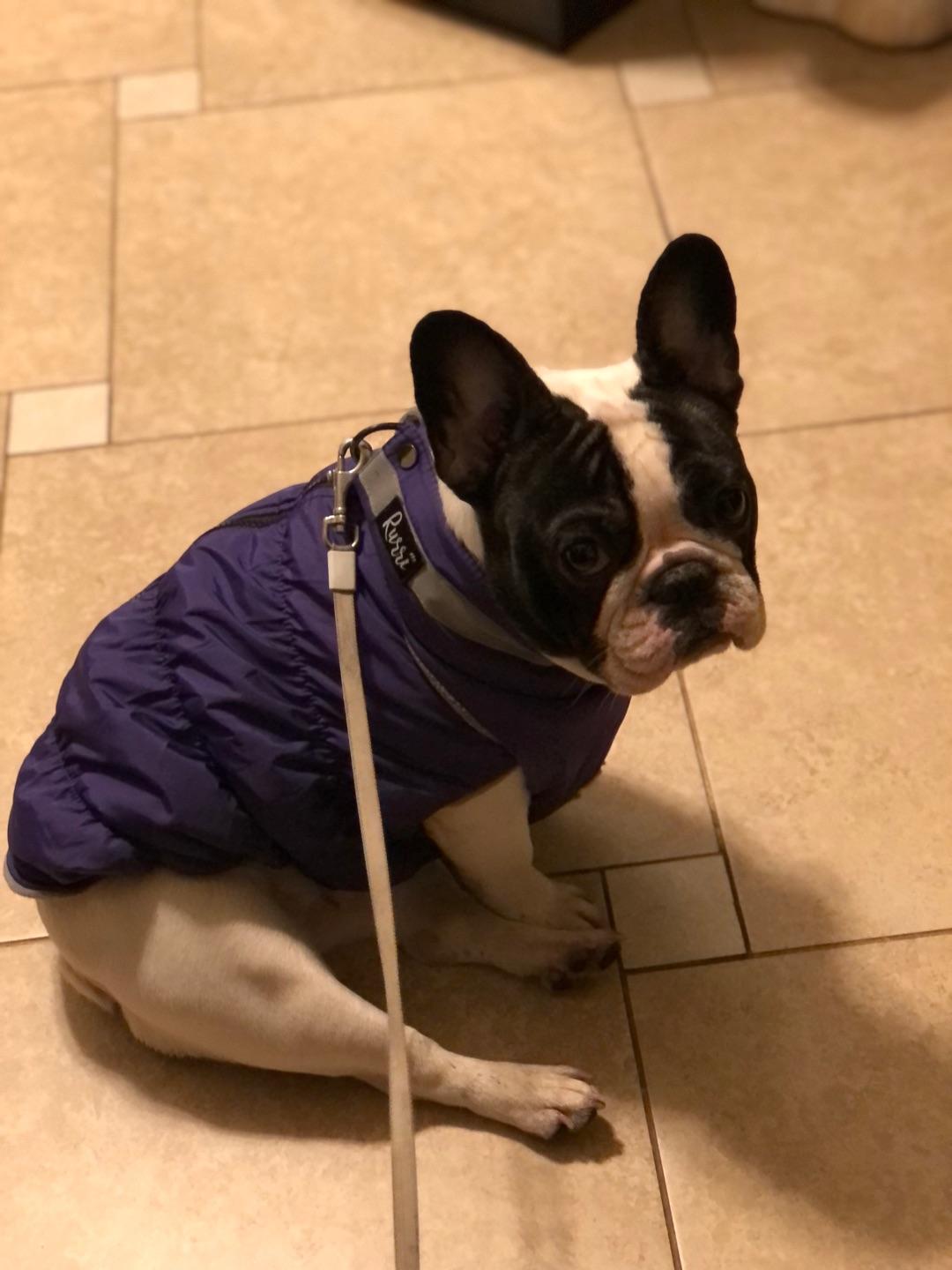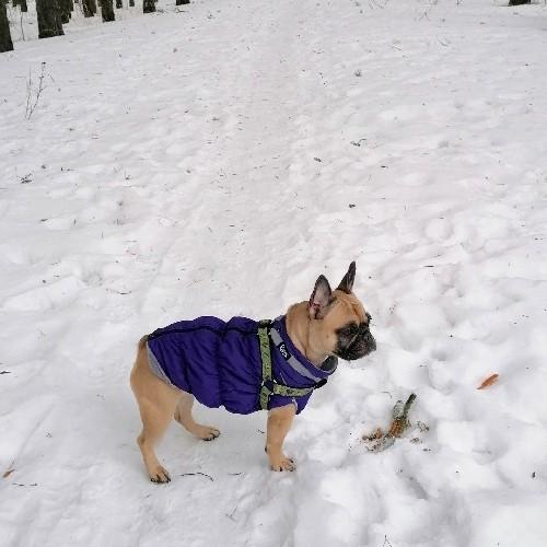 - Молния расположена на спинке, за счет этого куртку удобно надевать на питомца.