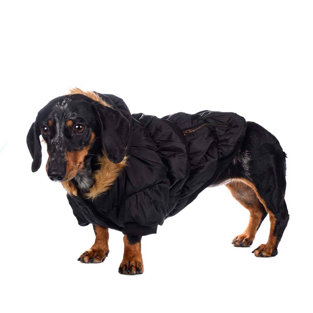 Куртка для собак черного цвета с меховым капюшоном из новой коллекции от любимого бренда Rurri. Одежда от Rurri - это всегда современные, качественные и долговечные изделия, которые подойдут любой собаке.