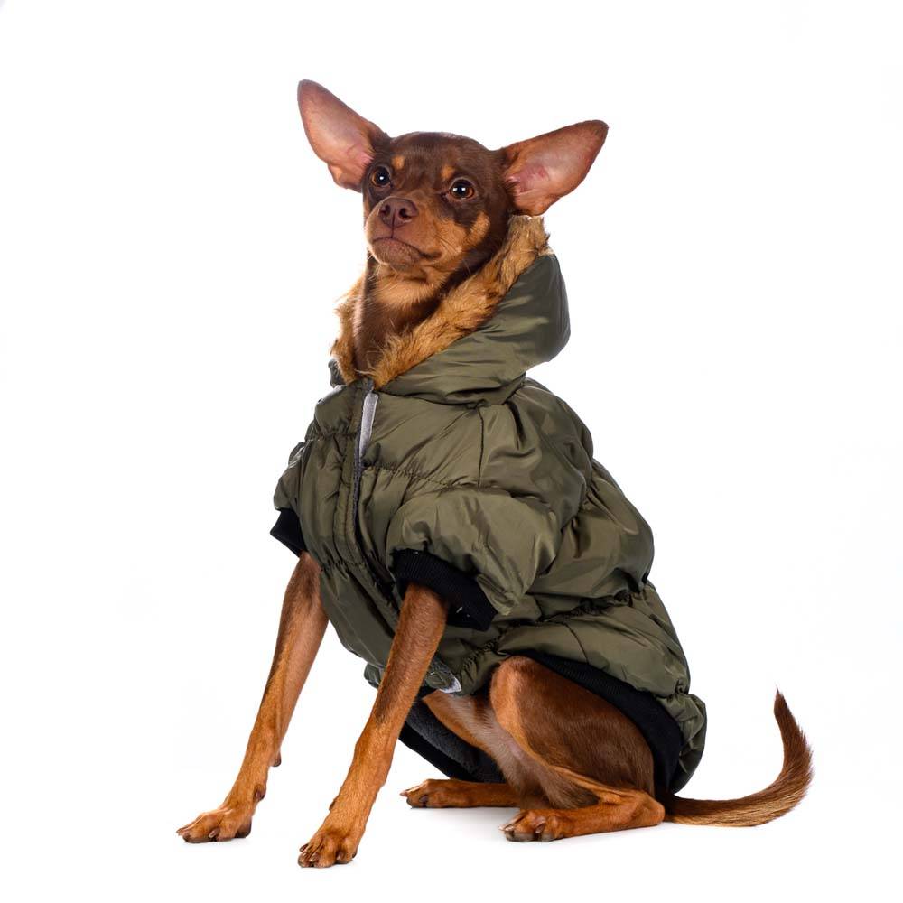 RURRI Куртка с меховым капюшоном для собак XS зеленый (унисекс)