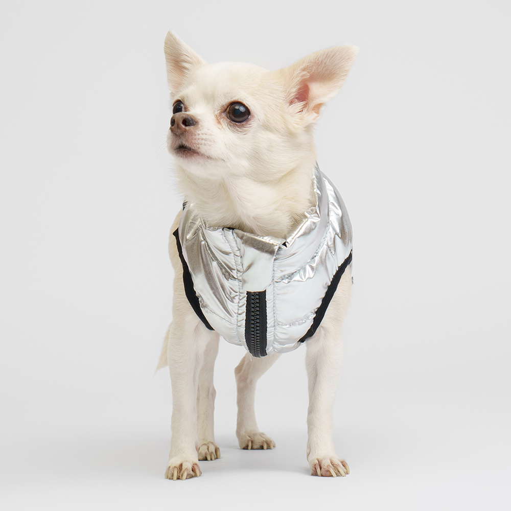 Куртка серебряная для собак от бренда Rurri надежно защитит вашего питомца от холода, ветра, дождя и снега.