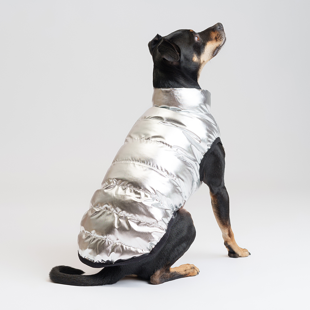 Куртка серебряная для собак от бренда Rurri надежно защитит вашего питомца от холода, ветра, дождя и снега.