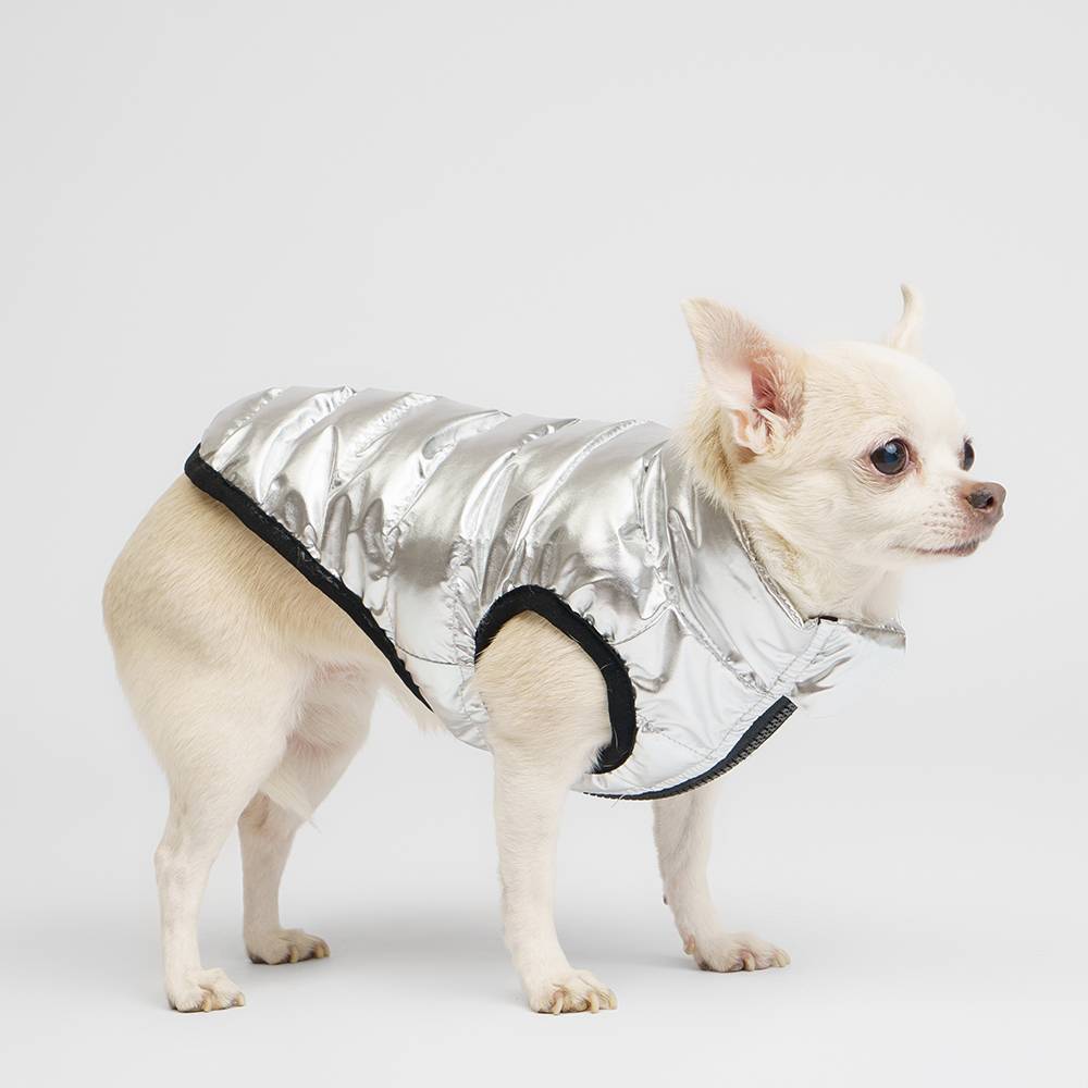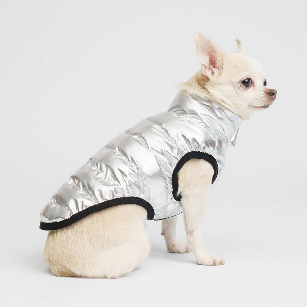 Куртка серебряная для собак от бренда Rurri надежно защитит вашего питомца от холода, ветра, дождя и снега.