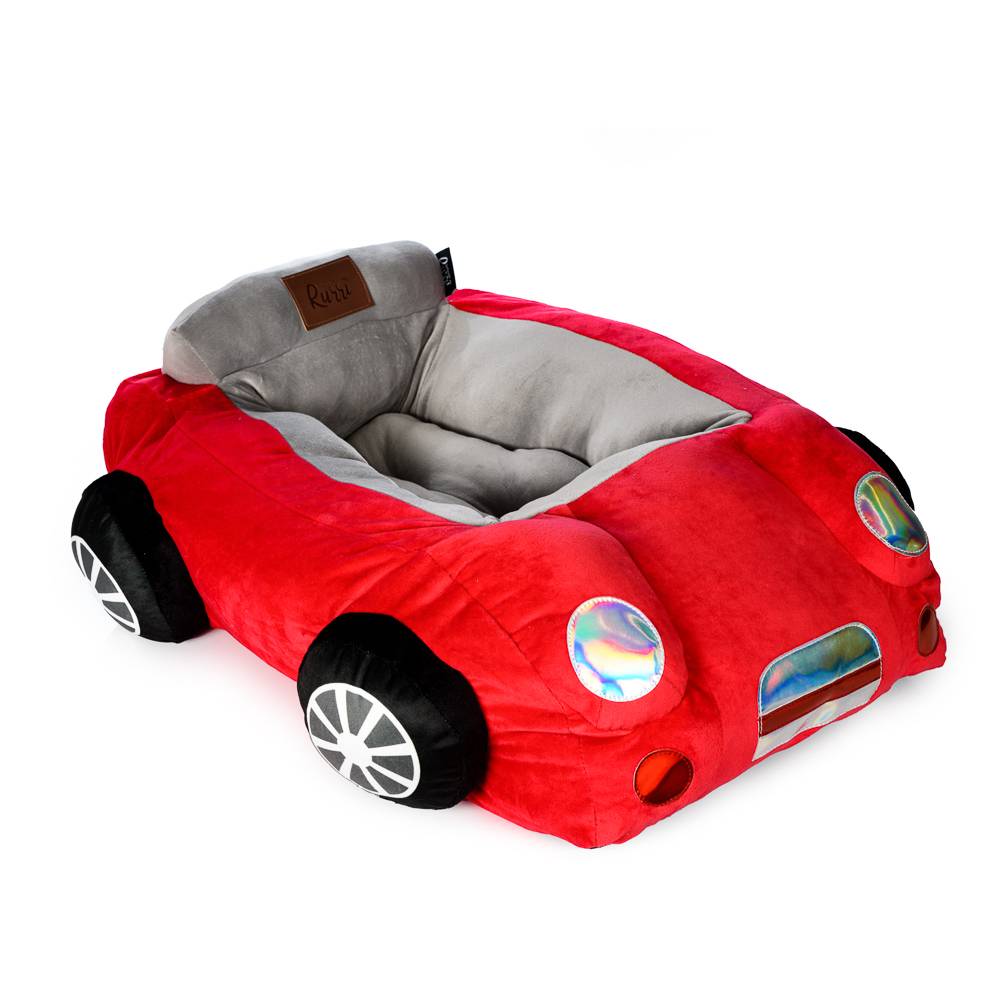 Внешний вид, очень необычная лежанка в форме машинки. Яркая, красивая, мягкая лежанка! Тяжелая, внизу прорезиненное дно, которое не скользит.
