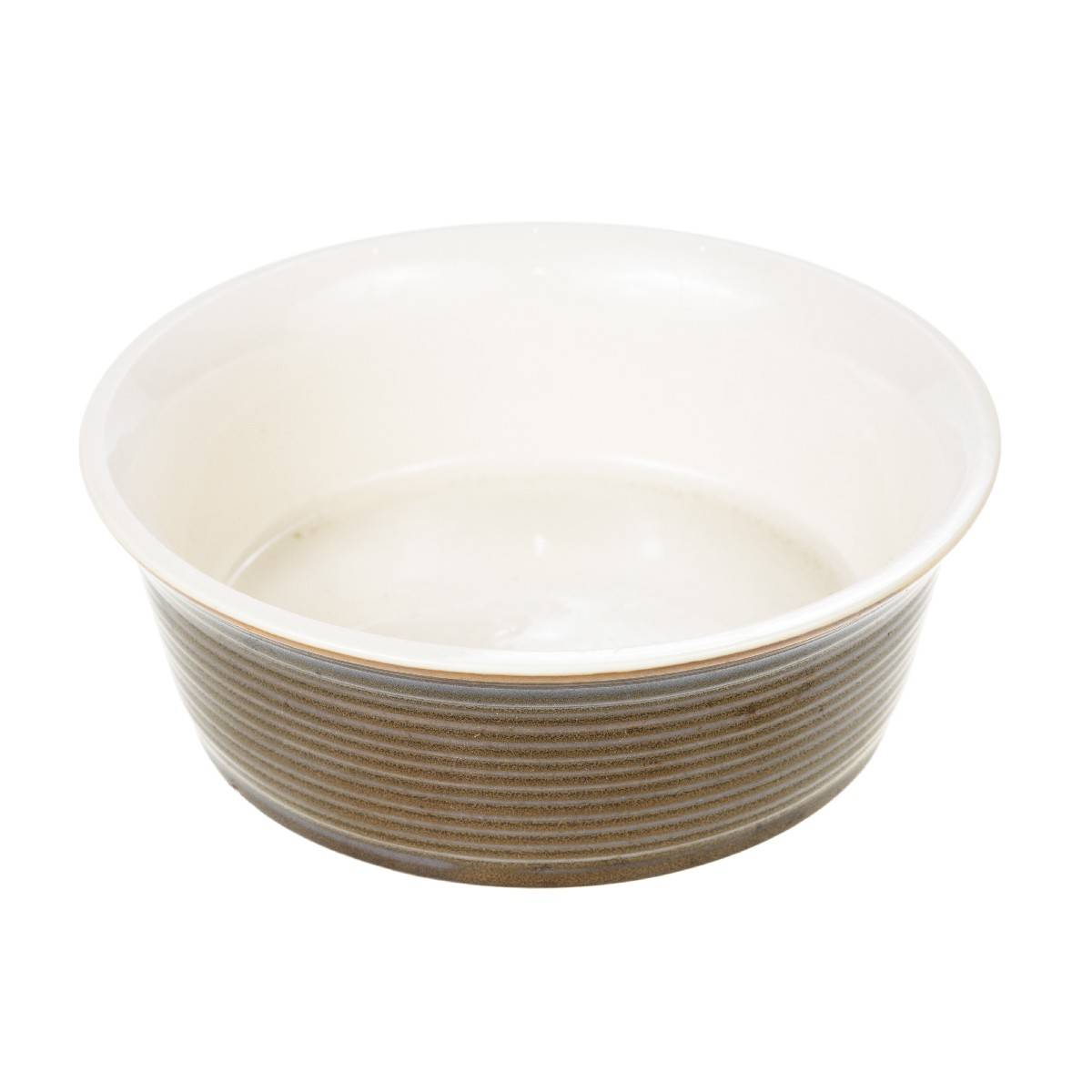 Миска для кошек и собак керамическая, белая внутри с фактурной наружной поверхностью цвета "латунь", диаметр 12,8 см.