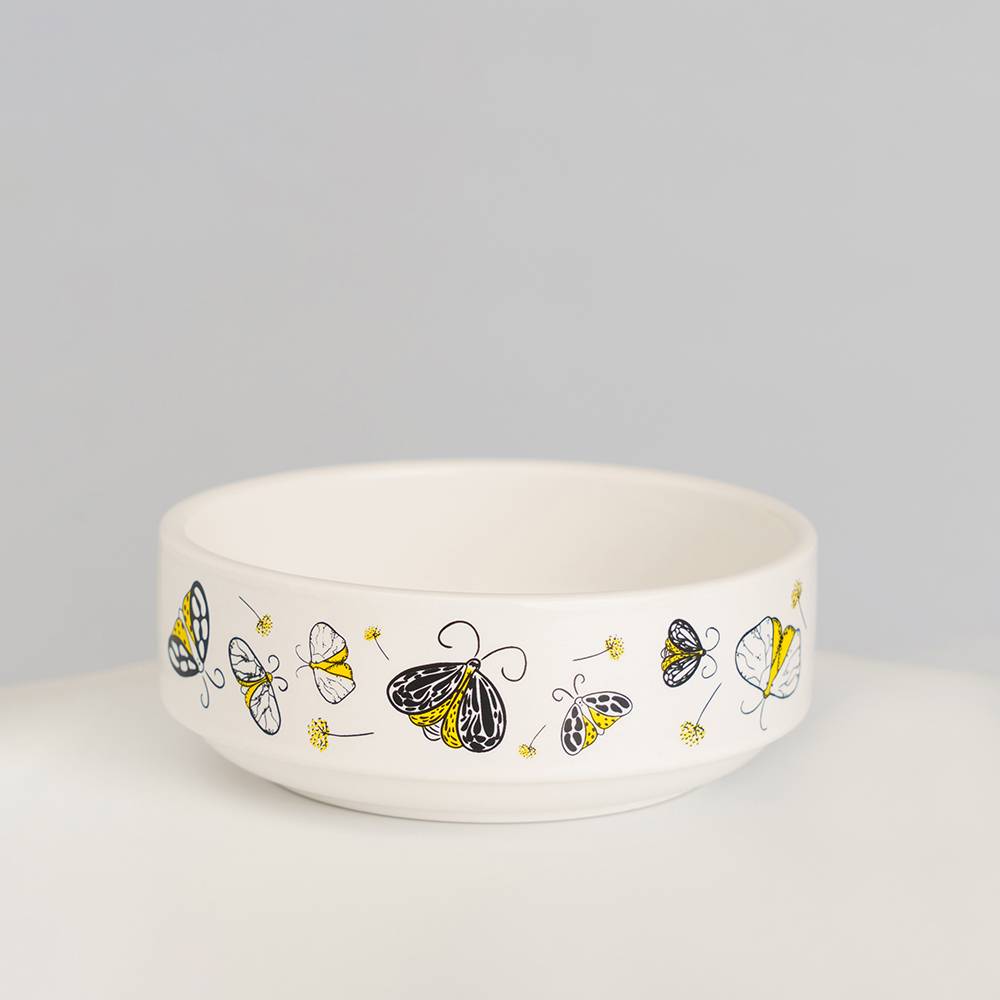 Фарфоровая миска Мотыльки от бренда Rurri – удобная посуда для питомца.