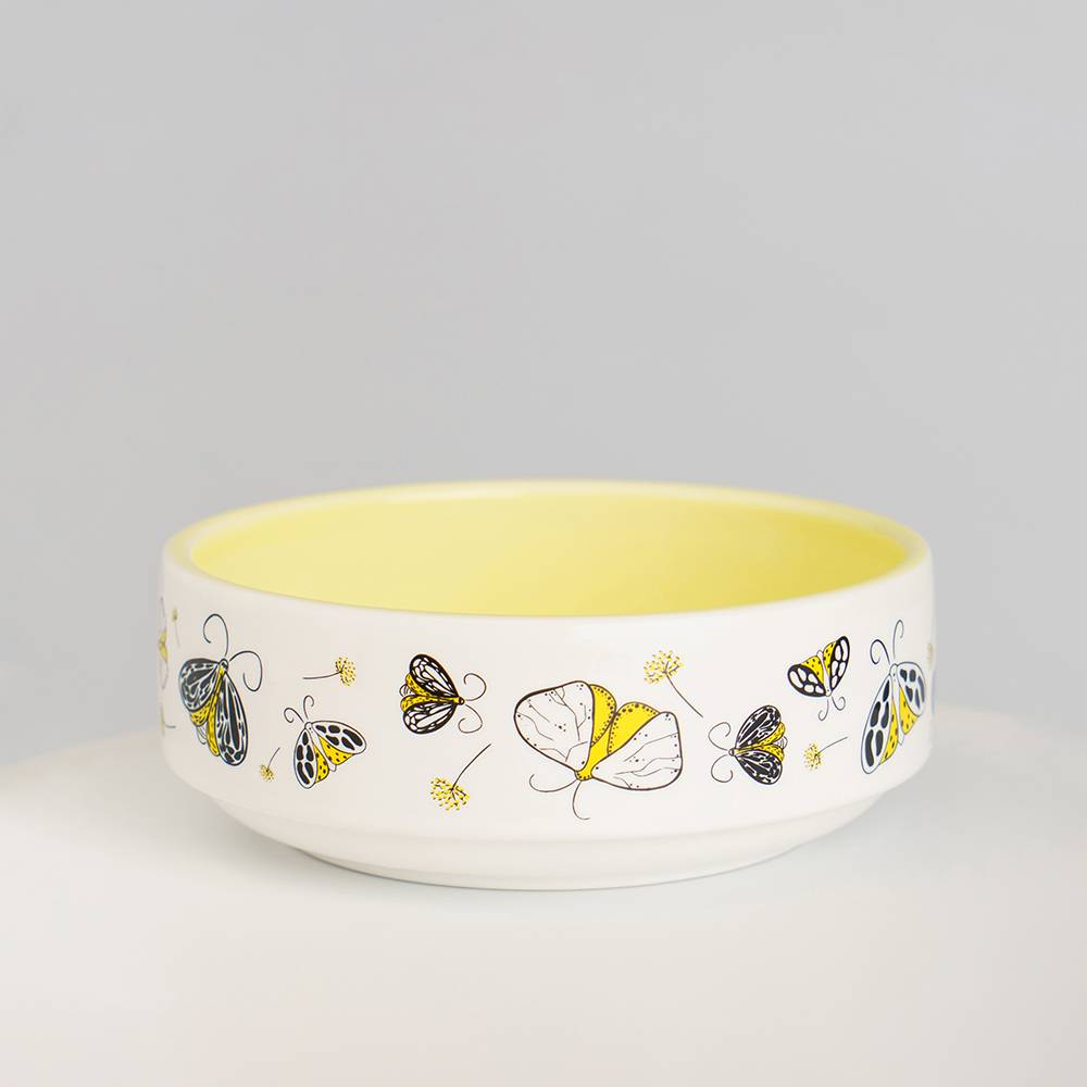 Фарфоровая миска Мотыльки от бренда Rurri – удобная посуда для питомца.