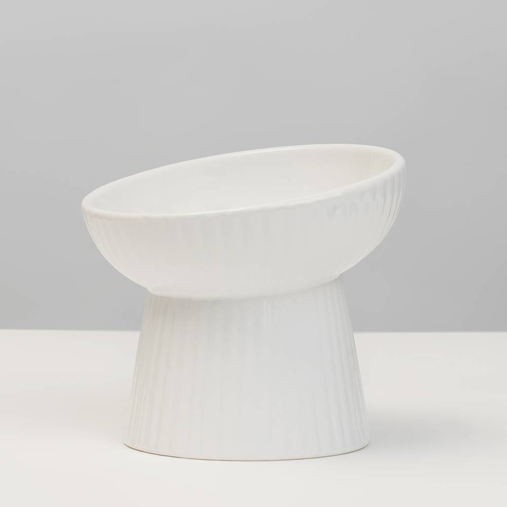 Керамическая миска на подставке подойдет для кошек, а также щенков и собак мелких пород.