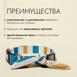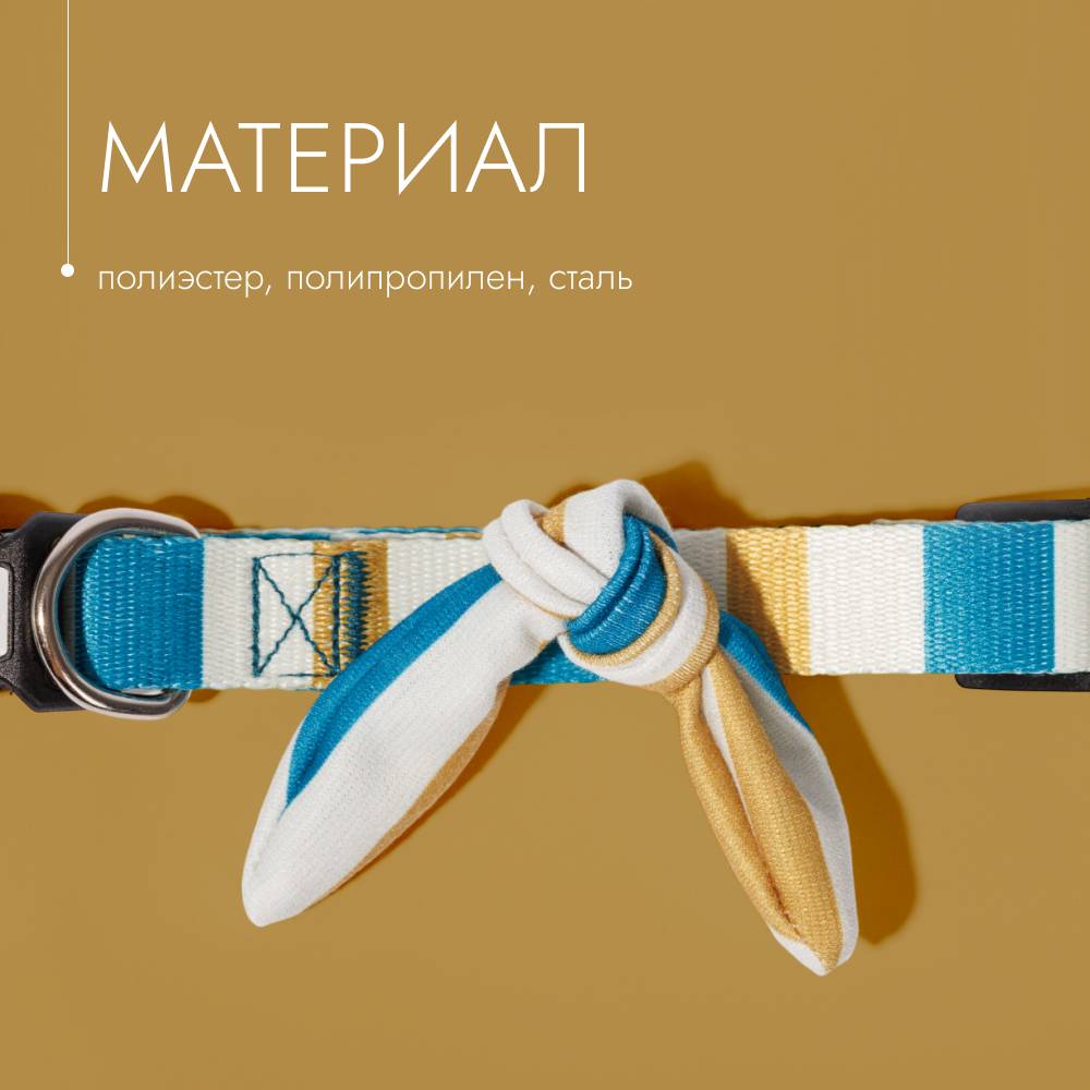 RURRI Ошейник с бантиком для собак и кошек Аквамарин, S, 30х45 см, песочно-синий в полоску