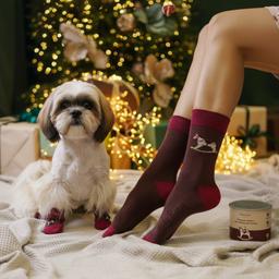 Ощутите атмосферу Нового года вместе с мягкими парными носочками для вас и любимого хвостика – они согреют не только ваши ножки и лапки, но и сердца.