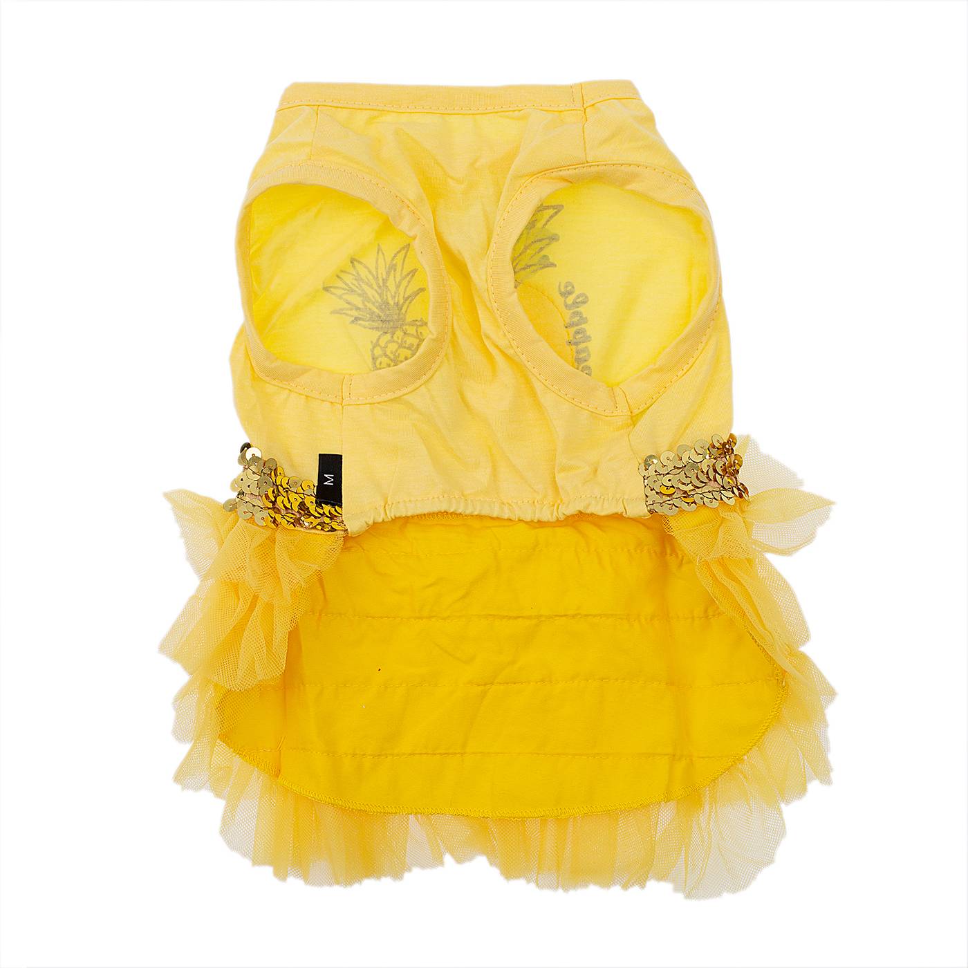 Платье с объёмным ананасом на спине сделает вашу пушистую модницу настоящей принцессой. Яркий летний цвет, пышная юбочка, 2 ананаса на спине любимца и пояс из пайеток создаст летнее настроение в любую погоду.