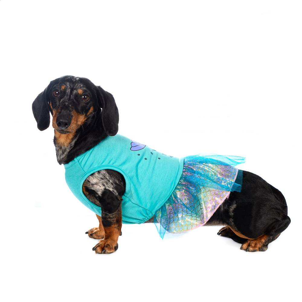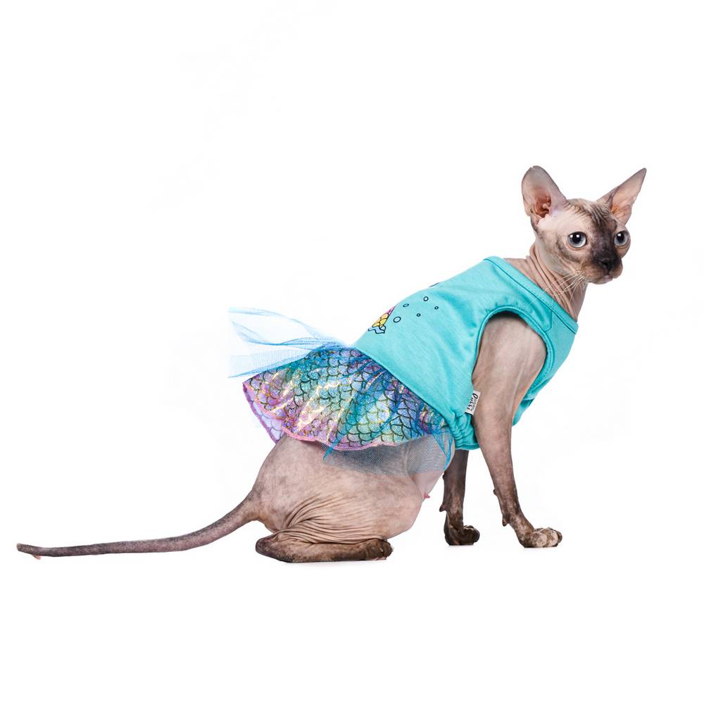 Коллекция, пропитанная запахом моря и лета, - Sun&Sea collection от любимого бренда RURRI.Летний и сочный наряд для вашей пушистой модницы: бирюзовое платье с рыбкой и переливающейся пышной юбкой, в котором ваша собака точно не останется незамеченной. Надевайте платье для прогулки в парке или на праздник. Устройте фотосессию и сделайте снимок счастливых моментов вместе со своим питомцем.