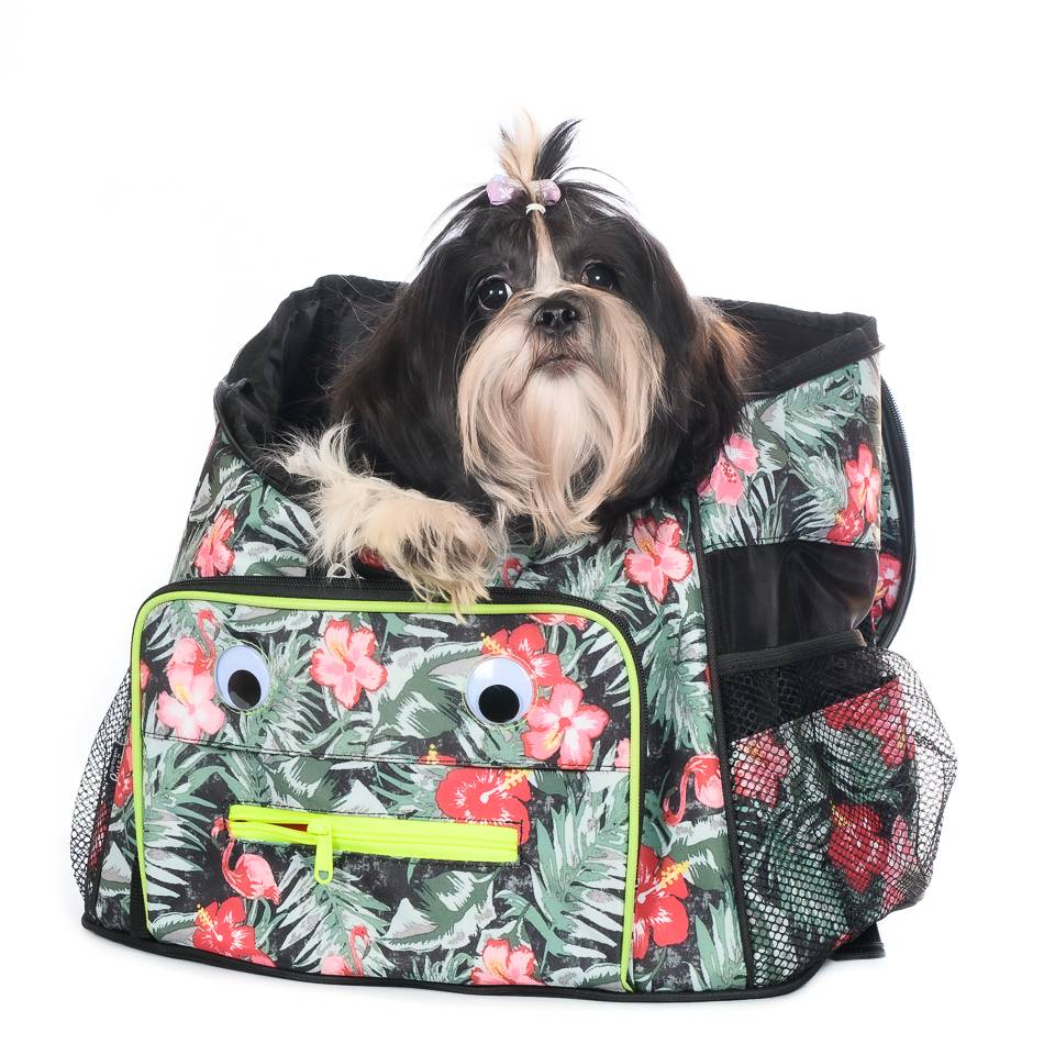 Рюкзак-переноска в расцветке с цветами RURRI – это удобный и надёжный аксессуар для перевозки небольших животных.