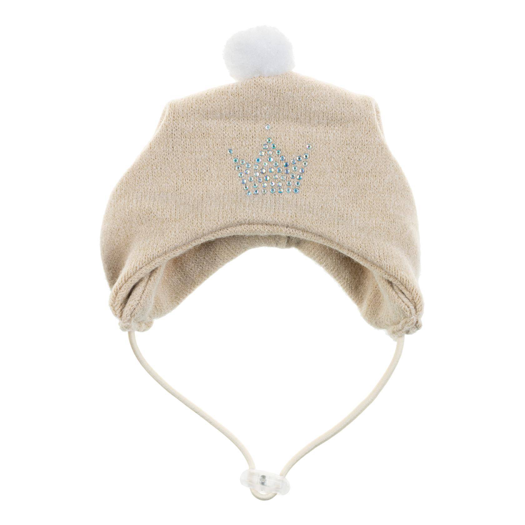 - Привлекательный дизайн с помпоном и стразами подойдет под любой комбинезон или куртку.