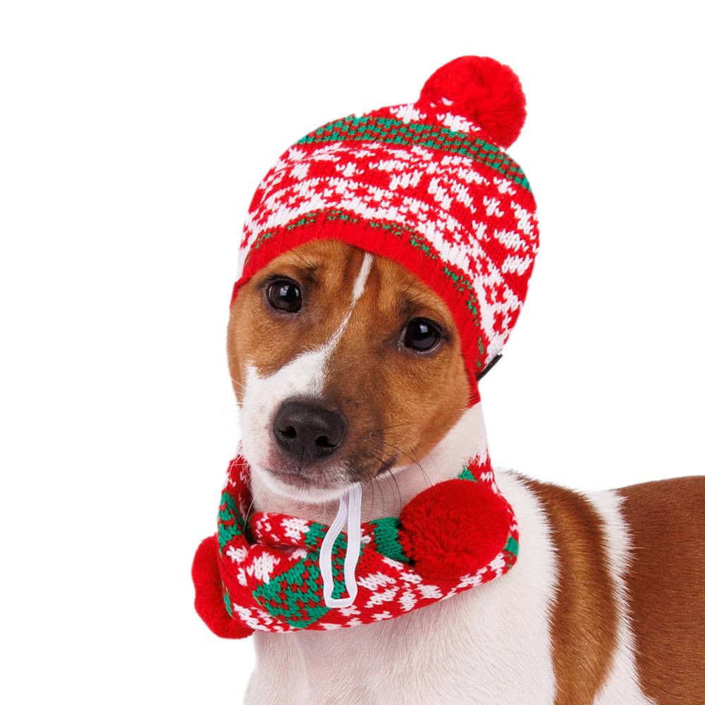 Комплект из шарфа и шапки от Rurri защитит собаку от холода и ветра.