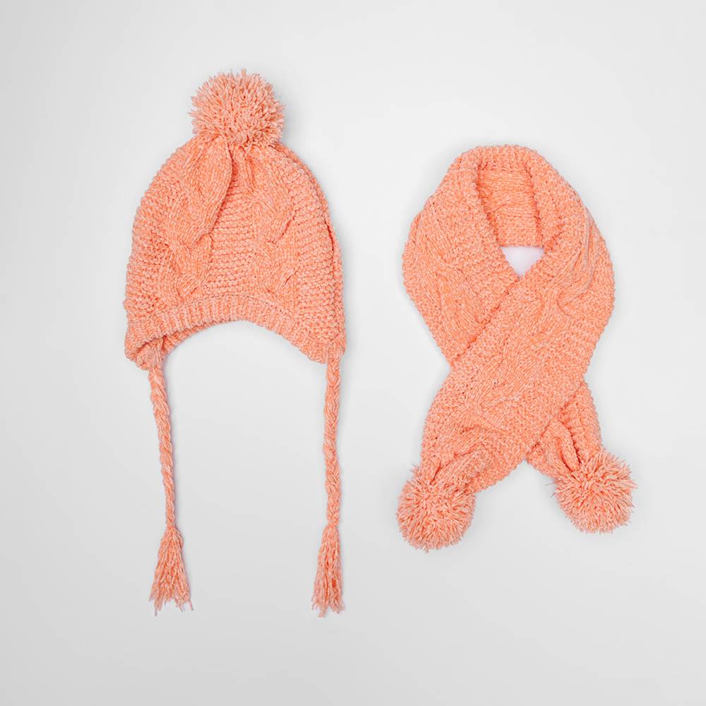 Размеры: шапка 18х16 см, шарф 60х8 см.