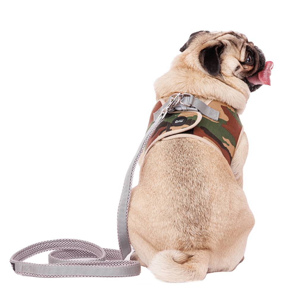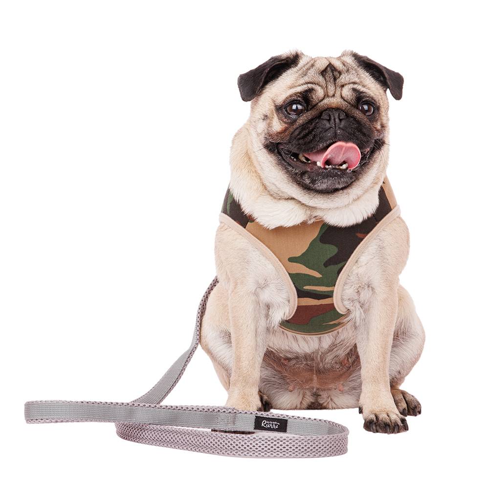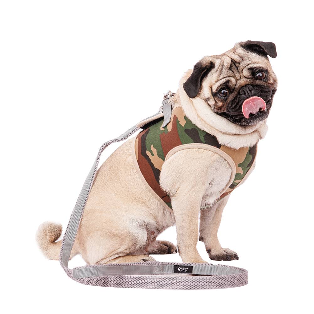 Шлейка-жилетка камуфляж с поводком от любимого бренда Rurri. Легкая шлейка позволит во время прогулки контролировать передвижения питомца, без риска повредить шею ошейником при резких рывках. Подобная амуниция будет незаменима для прогулок с активными, любопытными или пугливыми питомцами.