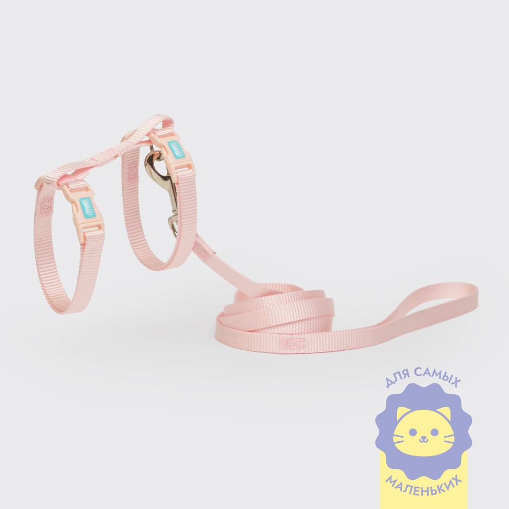 RURRI Шлейка с поводком нейлоновые для котят Kitty, объем шлейки 24-36 см, длина поводка 120 см, розовый