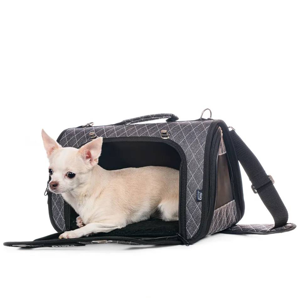 Сумка-переноска серого цвета RURRI – это удобный и надёжный аксессуар для перевозки небольших животных.