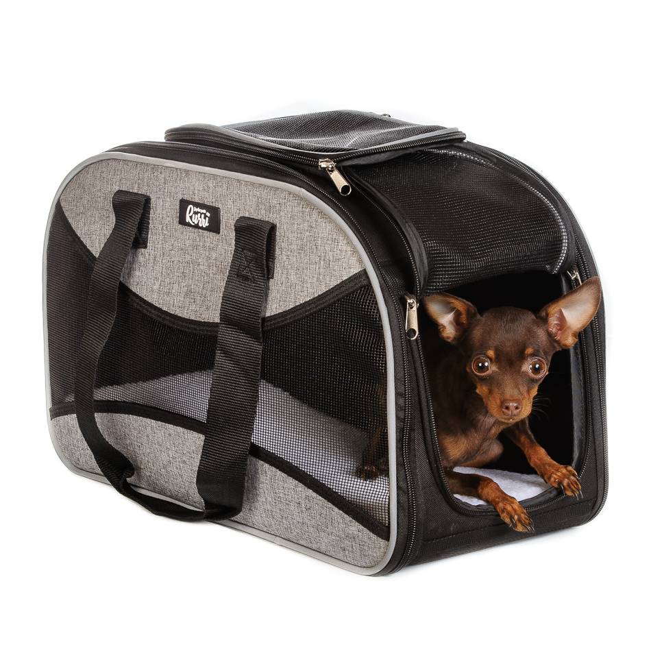 Rurri Дорожная сумка с сетчатым окошком на всей боковой части сумки, которая полностью открывается. Открываются также сетчатые окошки сверху и в боковой части сумки. Внутри сумки мягкий съемный коврик для комфорта питомца. Сумка имеет 2 удобные ручки и одну большую с мягкой подушечкой для ношения на плече.Сумка полностью раскладывается с помощью молний и складывается в плоский вариант для удобной упаковки и перевозки сумки в багаже.