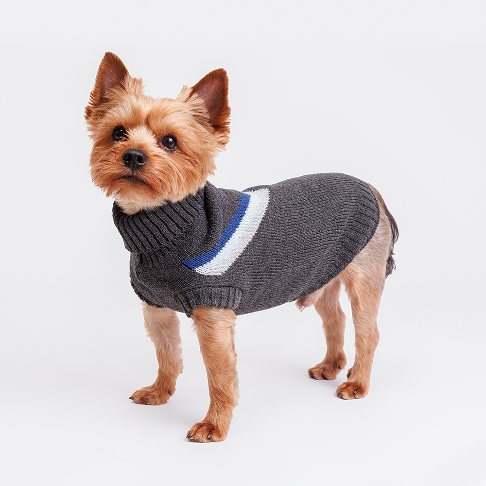 Черно-синий свитер от бренда RURRI поможет вашему питомцу не только согреться, но и быть самым модным на прогулке!