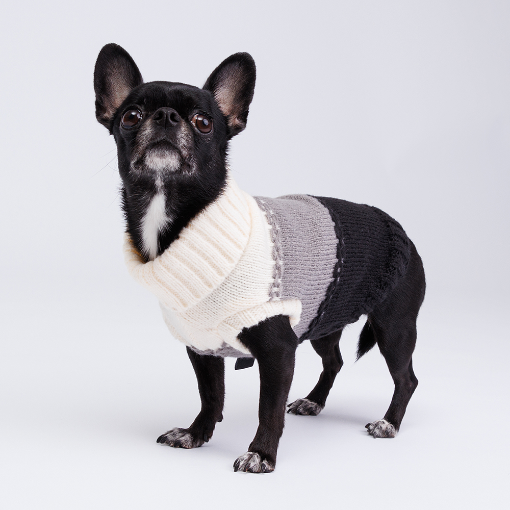 Черно-синий свитер от бренда RURRI поможет вашему питомцу не только согреться, но и быть самым модным на прогулке!