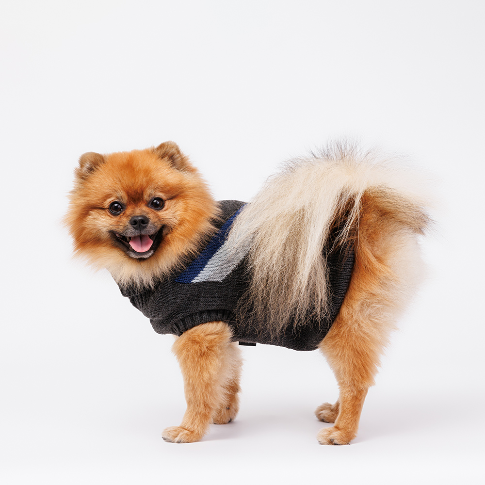 Черно-синий свитер от бренда RURRI поможет вашему питомцу не только согреться, но и быть самым модным на прогулке!